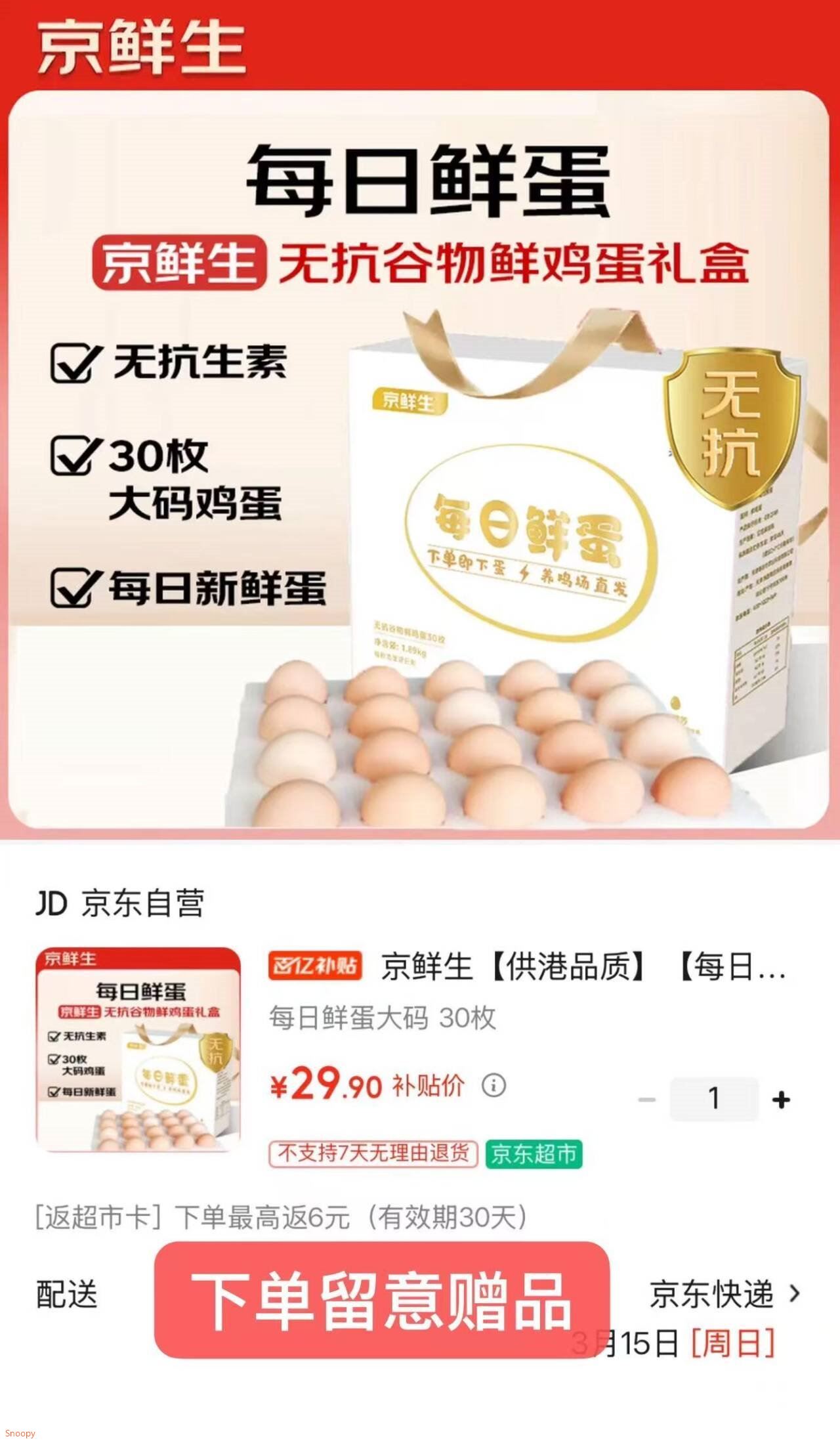 京鲜生鸡蛋发車 京鲜生 无抗大码鲜鸡蛋30枚 29.9自营包U,反6亓超市卡好单发报员2026年03月13日 16:270举报 ——京鲜生鸡蛋发車——京鲜生 无抗大码鲜鸡蛋30枚https://u.jd.com/NaAkQKB29.9自营包U,反6亓超市卡*无抗生素 比正常规格大1号复制文案