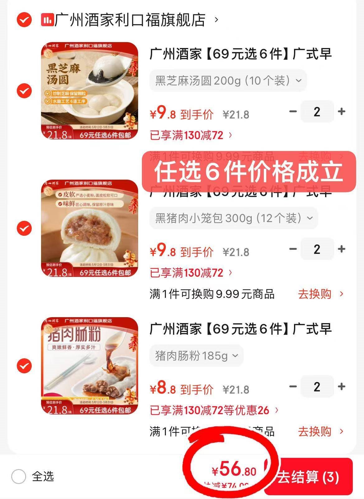 任选6件58.8亓,新客减2亓