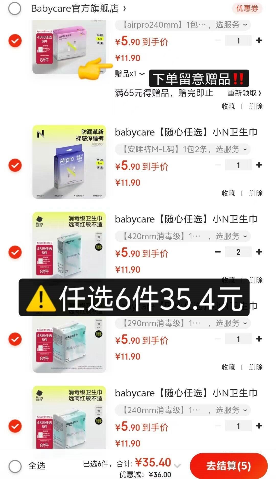 babycare 小N卫生巾/安睡裤 任选6件35.4元 好用又放心 好单发报员 2026年03月14日 16:29 0 举报 ——小N姨妈巾发車——babycare 小N卫生巾/安睡裤https://u.jd.com/N1Nq2KU任选6件35.4元,好用又放心*贈护垫24片*2包 卫生巾5片 复制文案