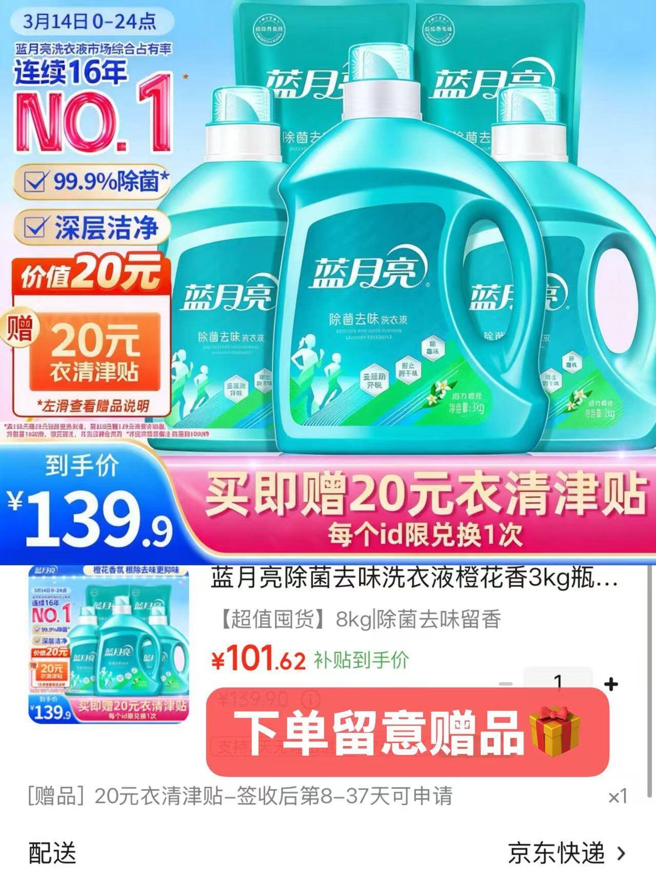 【自营】蓝月亮 洗衣液16斤