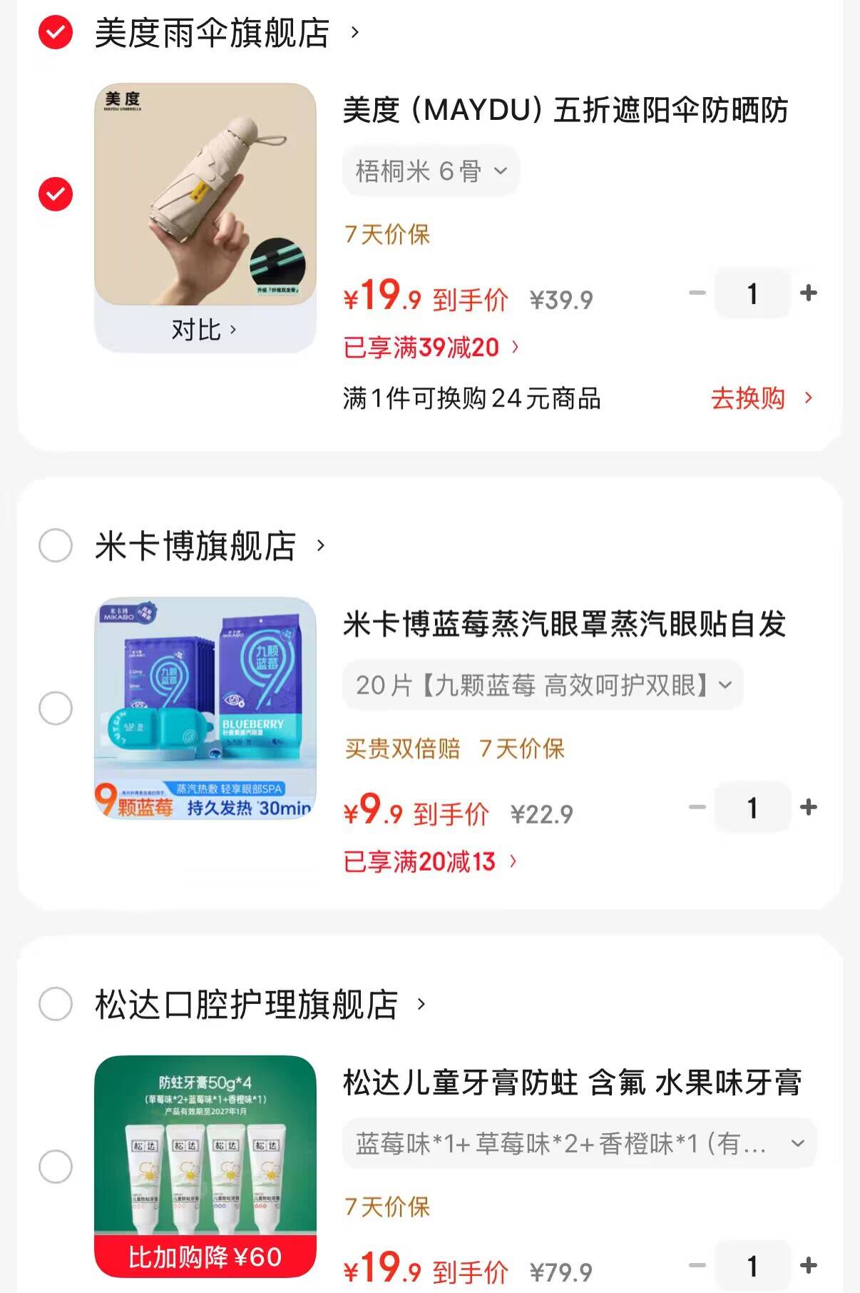 美度 5折6骨防晒伞雨伞19.9元