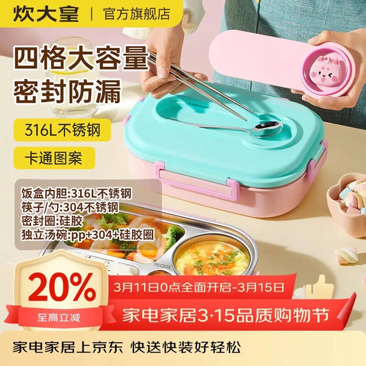 炊大皇 不锈钢4格餐盘1.2L