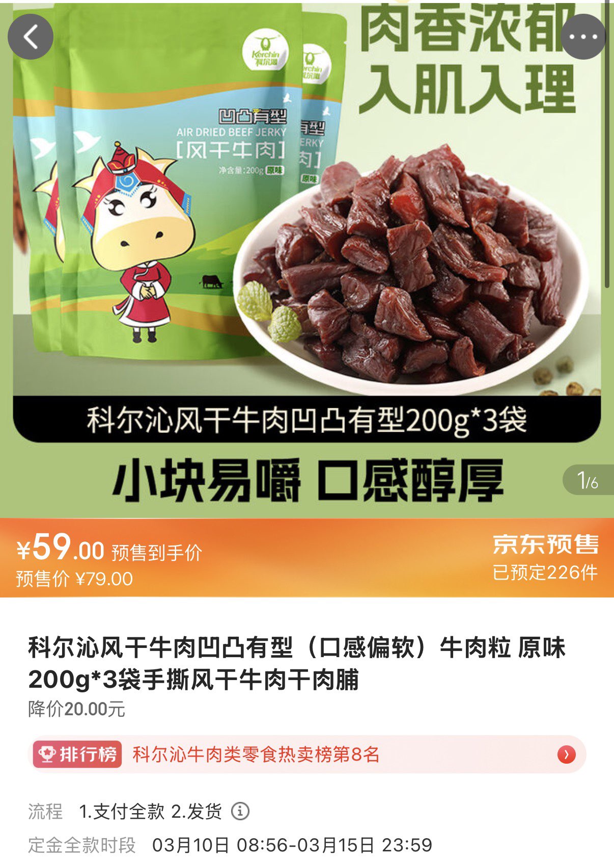 科尔沁风干牛肉200g*3袋