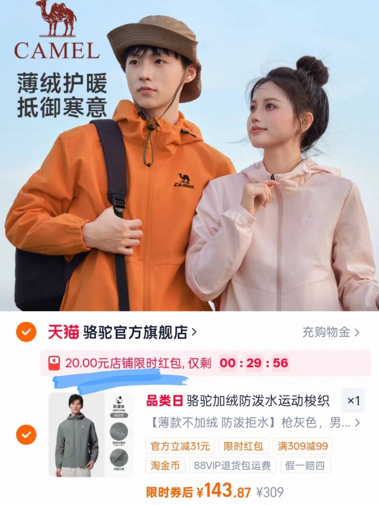 179骆驼登山服防泼拒水 vip 弹店铺限时低至144 款式多好单发报员2026年03月15日 17:450举报 179骆驼登山服防泼拒水vip 弹店铺限时低至144款式多 旺季这款最低300rhttps://m.tb.cn/h.iUgNcIC复制文案