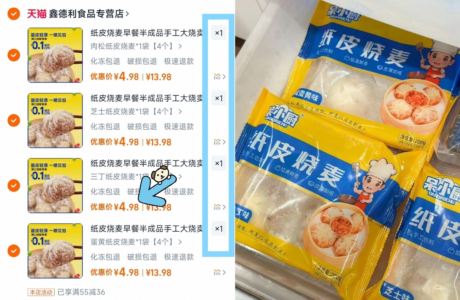 呆小厨糯米纸皮烧麦早餐16枚