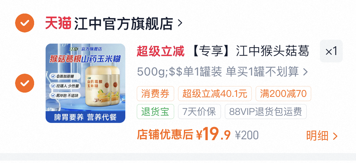 拍下19.9 江中猴头菇葛根山葯玉米糊500g/罐 好单发报员 2026年03月16日 00:00 0 举报 速,拍下19.9江中猴头菇葛根山葯玉米糊500g/罐https://m.tb.cn/h.i4gcHdA 复制文案