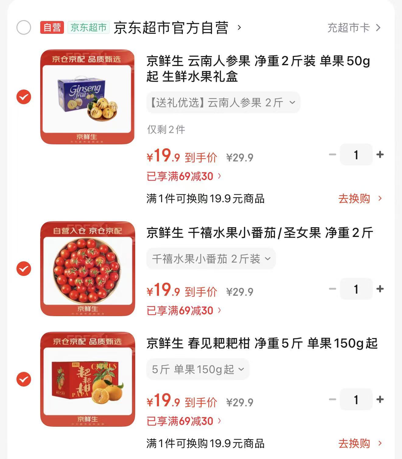京鲜生 水果,任选3件【59.7】https://u.jd.com/N6RWWvK