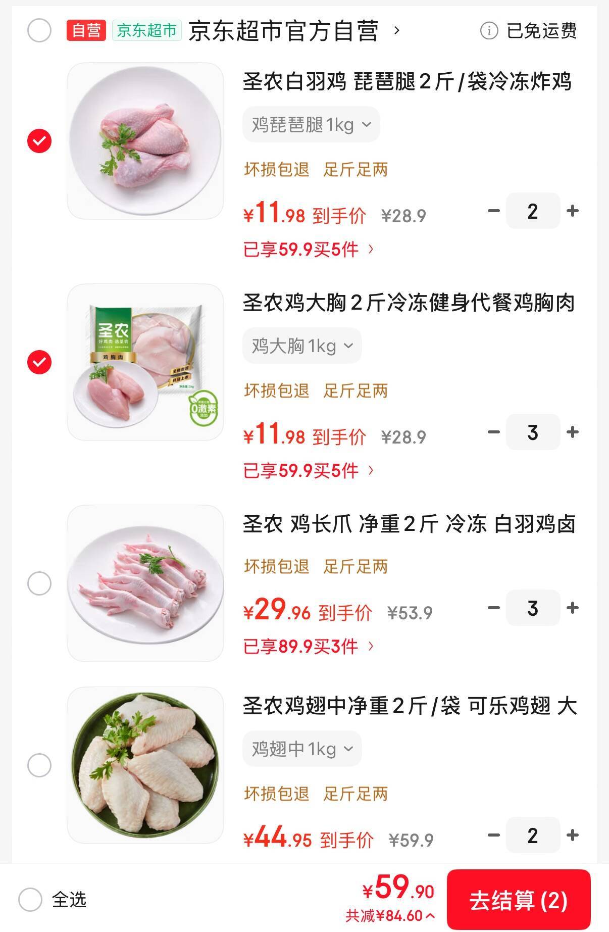 2件89.9元,折22.4/斤