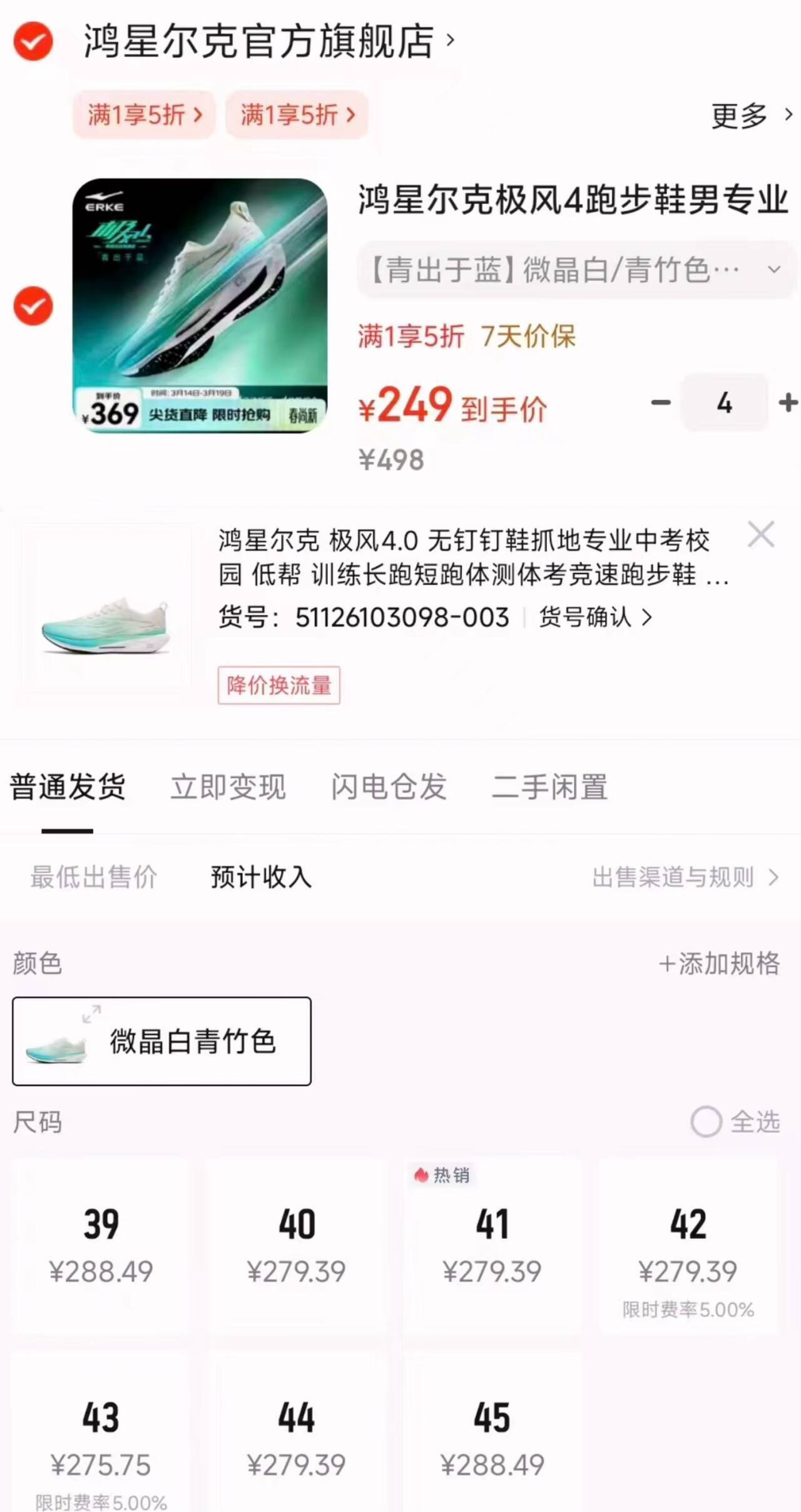 速度 鸿星尔克跑鞋叠加5折卷