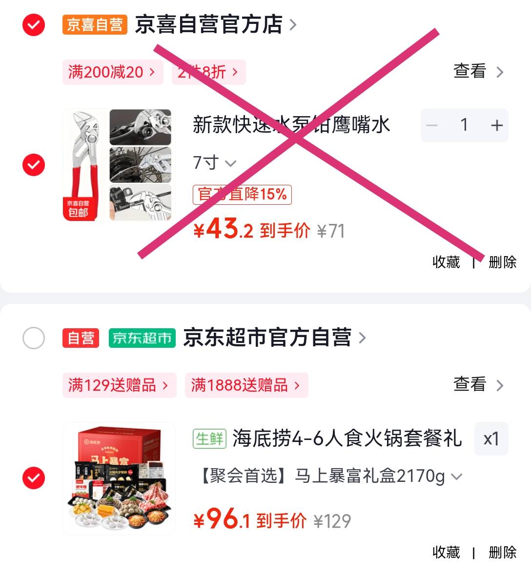 凑单任选1件付后退
