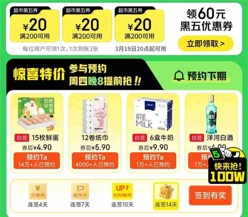 20点 4.9元15个鸡蛋 四选一 先预约