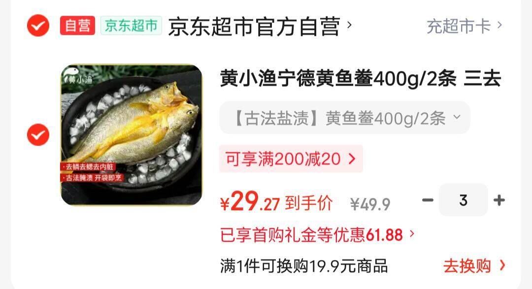 14.6元/条 自营好价 自营 黄小渔 宁德黄鱼鲞400g/2条 拍3件6条好单发报员2026年03月20日 20:050举报 14.6元/条!自营好价!【自营】黄小渔 宁德黄鱼鲞400g/2条https://u.jd.com/cDKRxLg拍3件6条 叠礼金实付87.82元!复制文案
