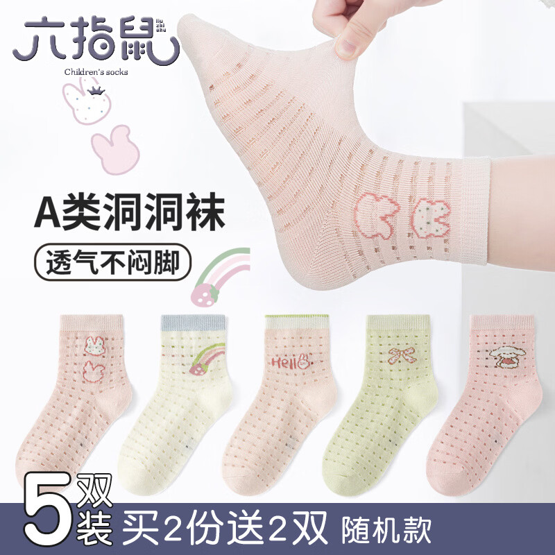 15.6元 男女童薄款透气网眼袜5双