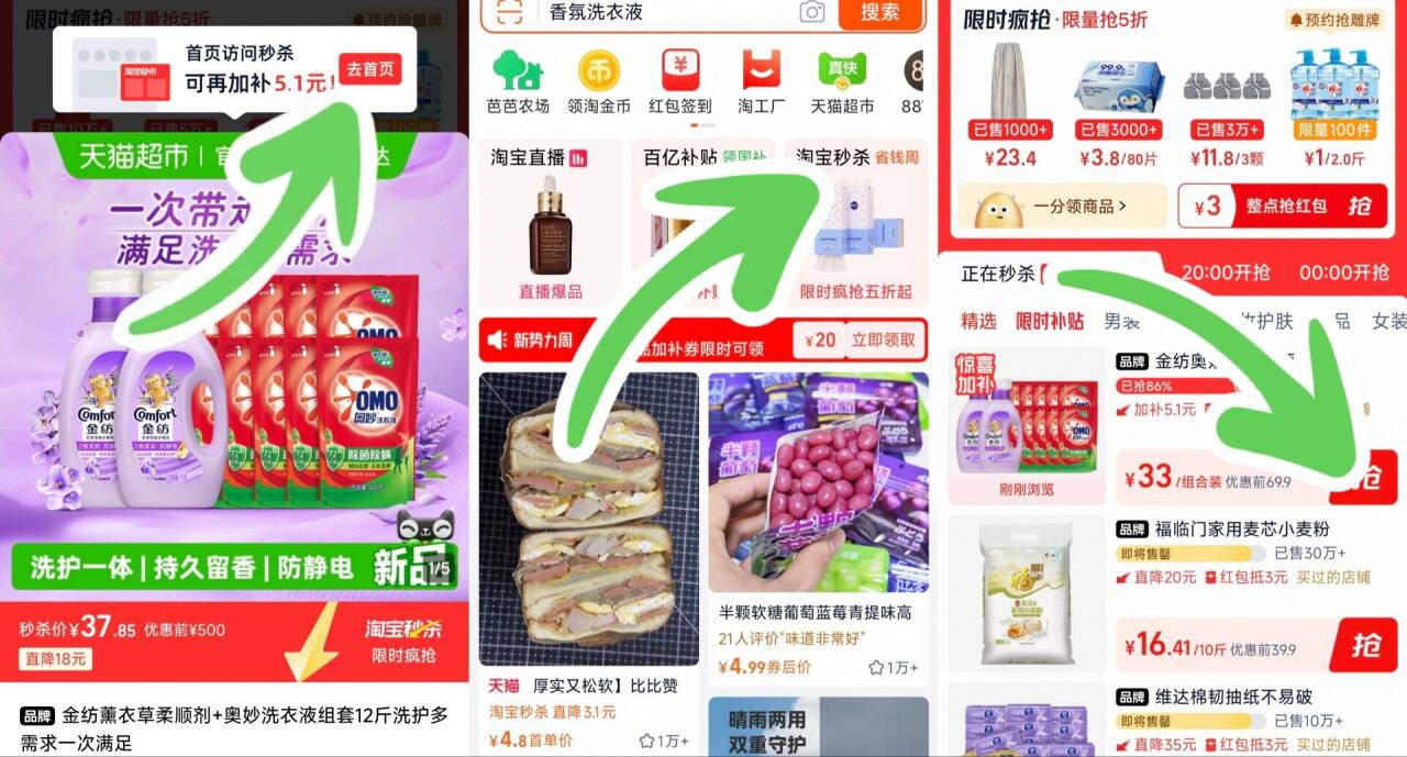 金纺4斤奥妙洗衣液8斤 按图秒刹拍反1卡32元