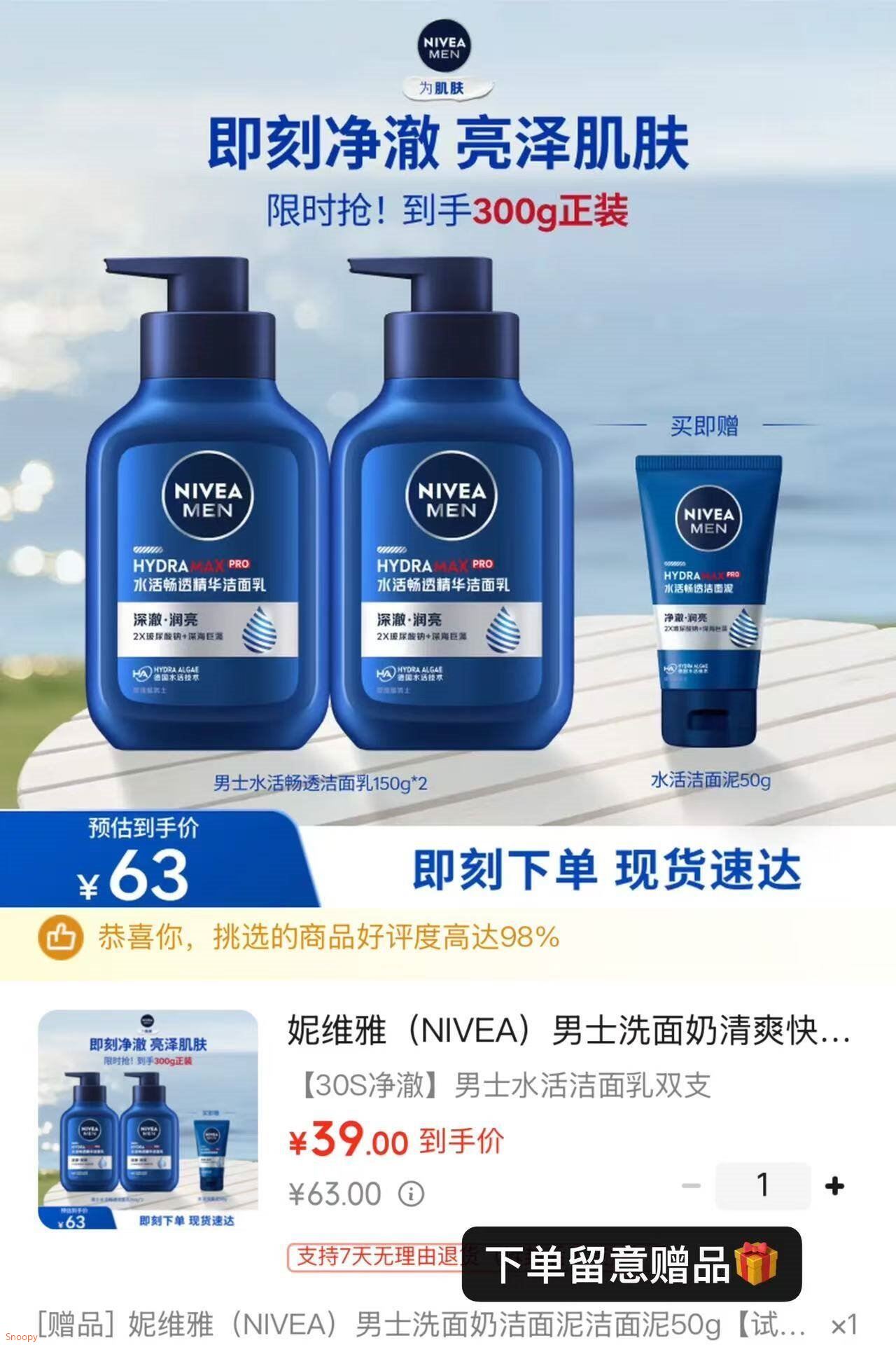 39元,下単再贈洁面50g/支