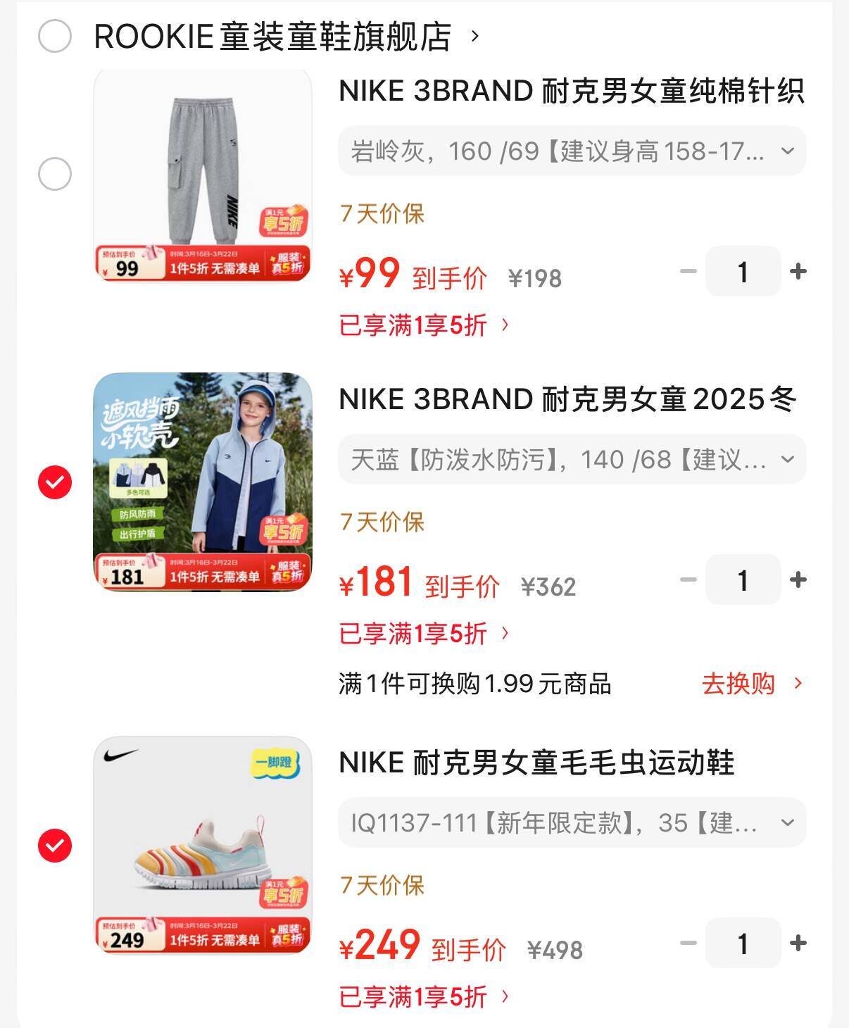 耐克童装5折0点结束
