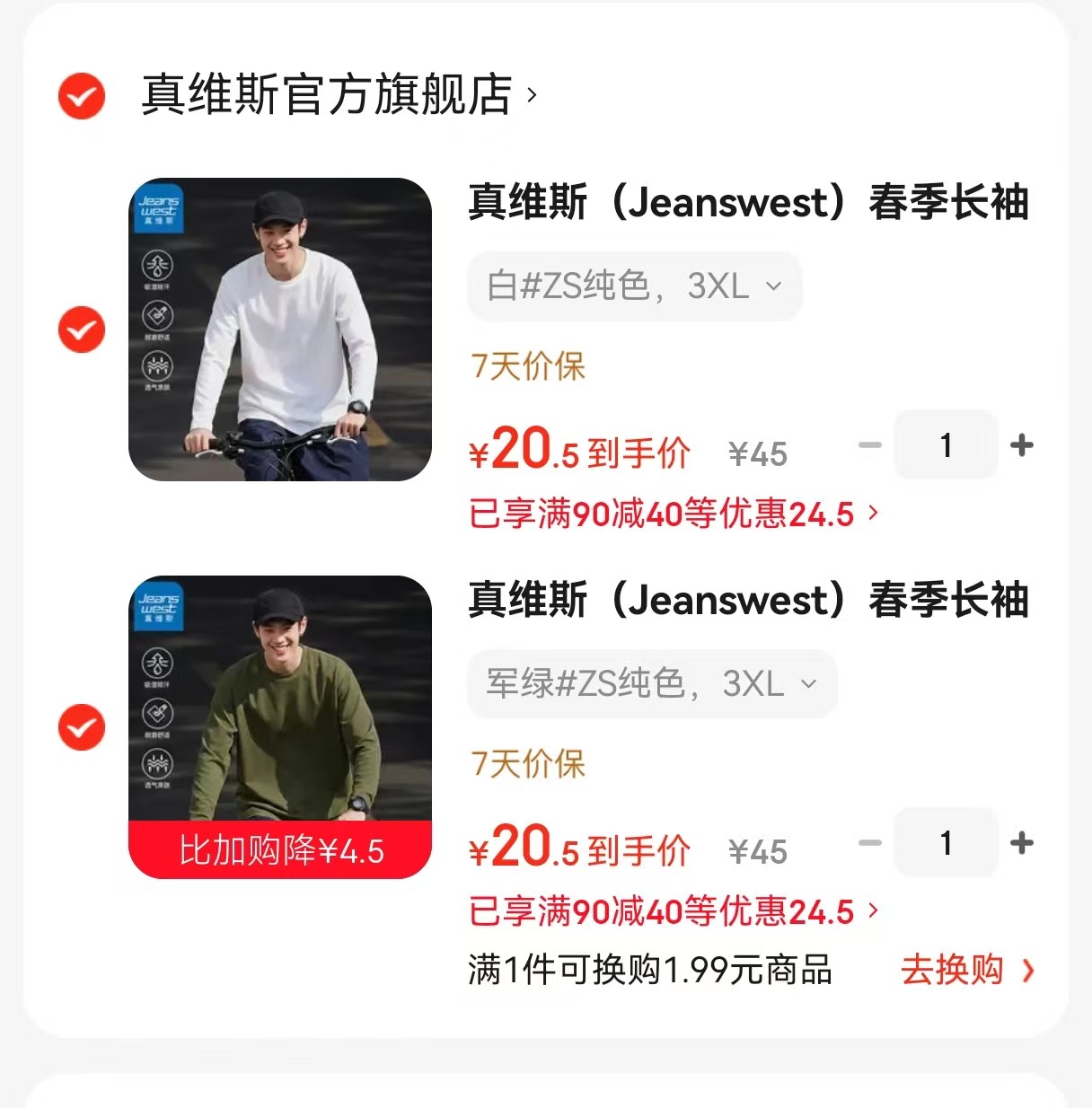 真维斯 春季长袖T恤男华夫格打底,拍2件【41】