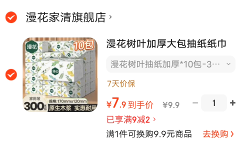 7.9元!树叶抽纸加厚 300张*10包