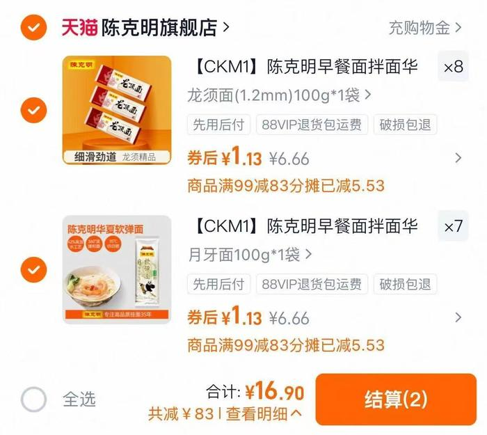 陈克明龙须/软弹挂面100g任选件 16.9元好单发报员2026年03月25日 09:230举报 BUG!这可是挂面中的佼佼者任选件16.9元単袋1.1元!陈克明龙须/软弹挂面100ghttps://m.tb.cn/h.ihsJNfQ复制文案