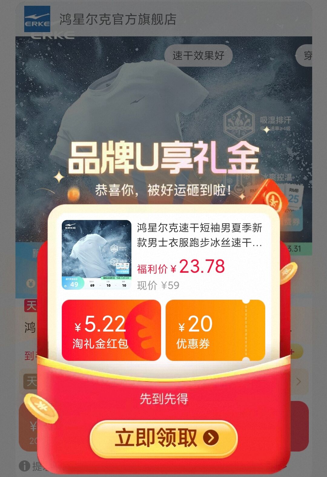 鸿星尔克速干短袖男夏季 新款男士衣服跑步冰丝速干衣 20元好单发报员2026年03月26日 17:070举报 20元!速度领礼金下拉详情页陶金币页面拍【鸿星尔克旗舰店】鸿星尔克速干短袖男夏季新款男士衣服跑步冰丝速干衣https://m.tb.cn/h.i7Q9VLD复制本消息 打开桃宝查看复制文案