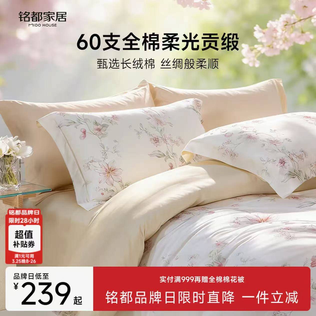 60支纯棉印花四件套239元