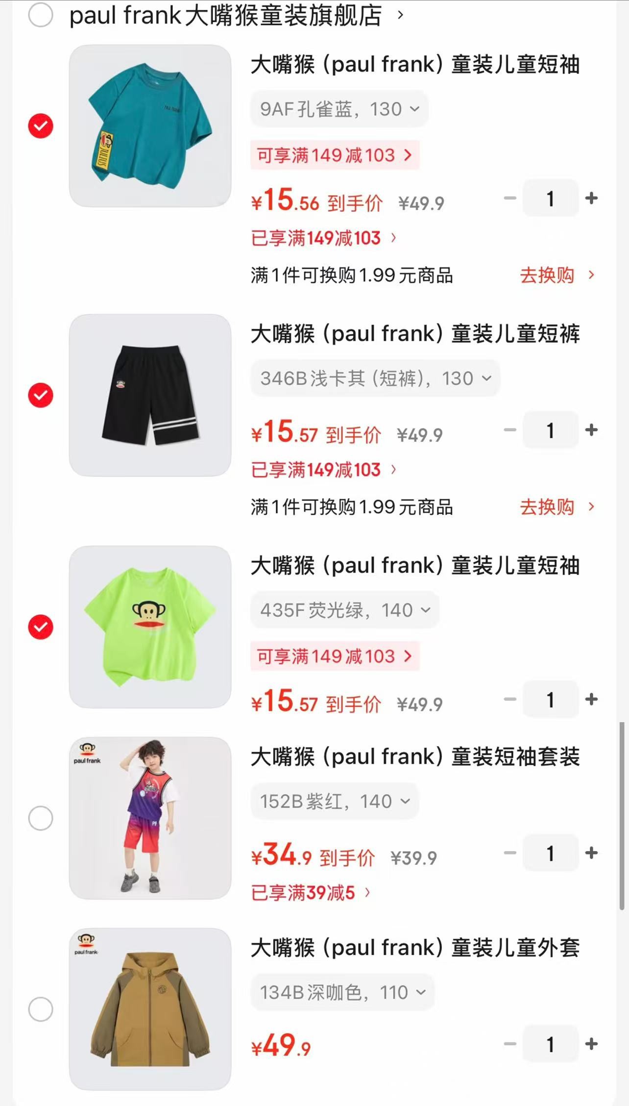 大嘴猴 童装儿童短袖/短裤,任选3件【46.7】
