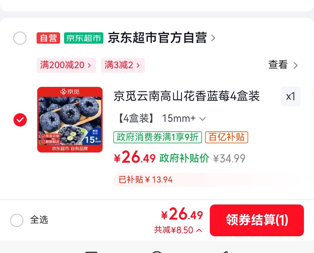 国补 券!自营蓝莓