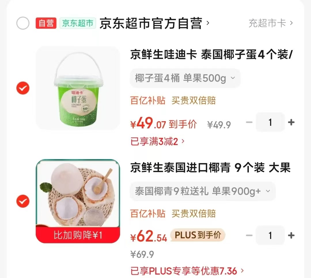 京鲜生哇迪卡 泰国椰子蛋4个装/箱 单果500g/个【48.9】