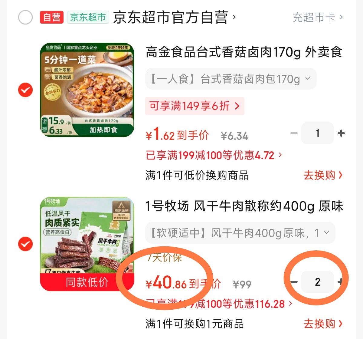 一号牧场风干牛肉400g/袋,任选两件,折40/件