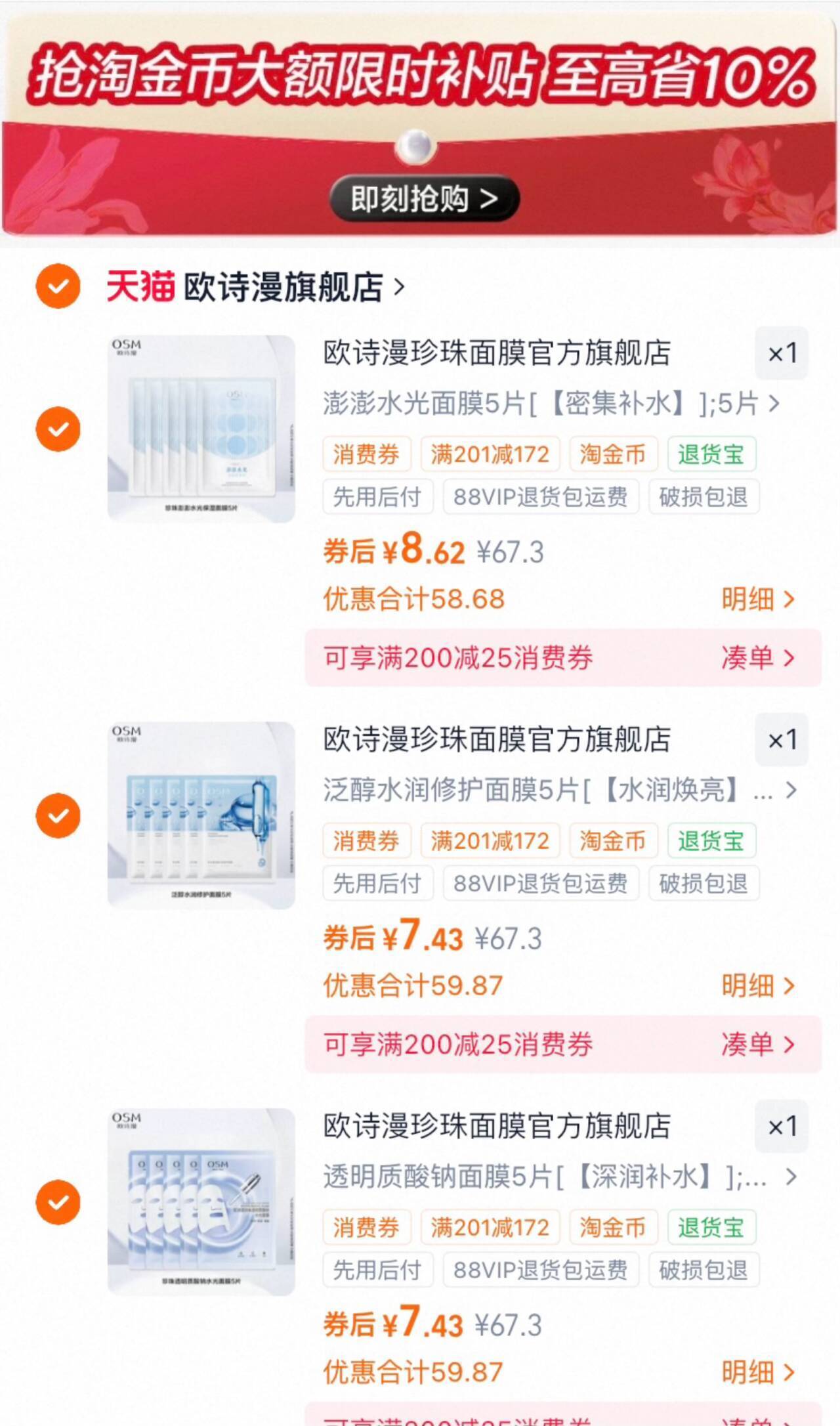 欧诗漫面膜任选3件 23.4元好单发报员2026年03月27日 12:120举报 下拉 1.5/片欧诗漫面.膜任拍3件 到手15片23.4元修护/布水/提亮多歀选!https://m.tb.cn/h.iipSEGo复制文案