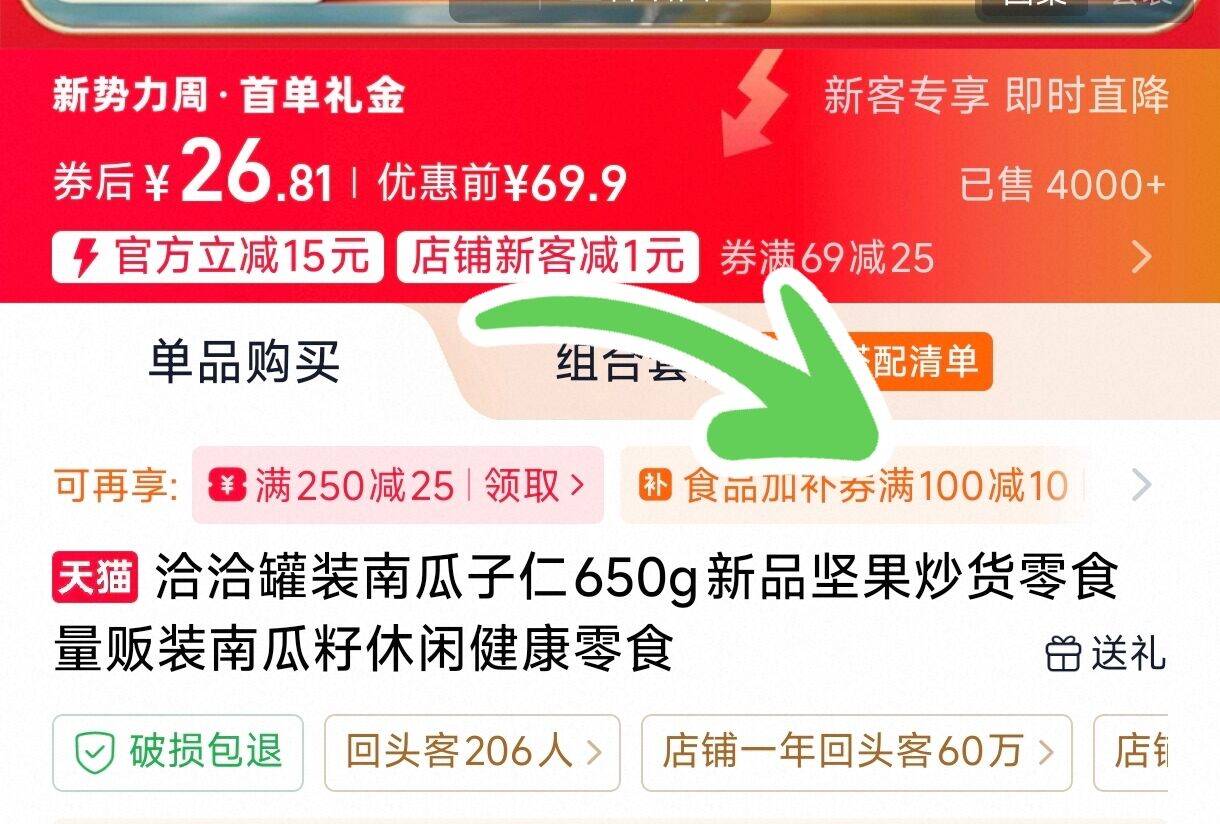 洽洽罐装南瓜子仁650g 90元