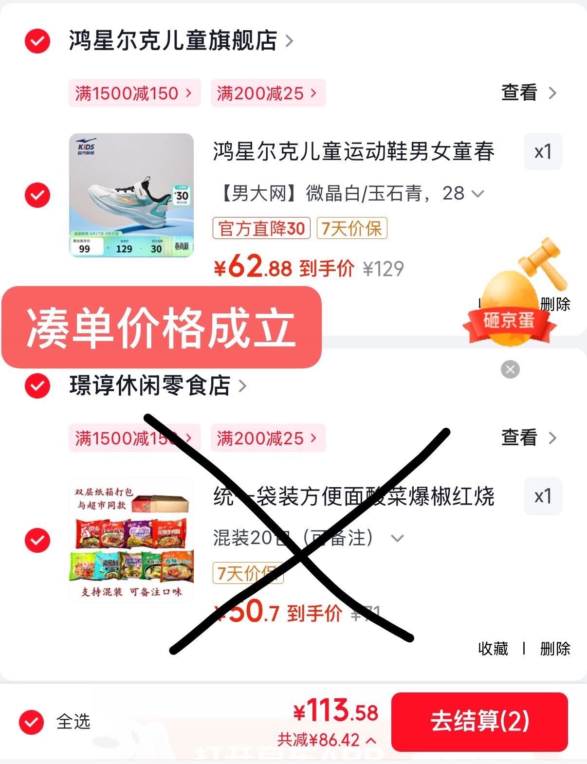 凑単1件苻款后可退