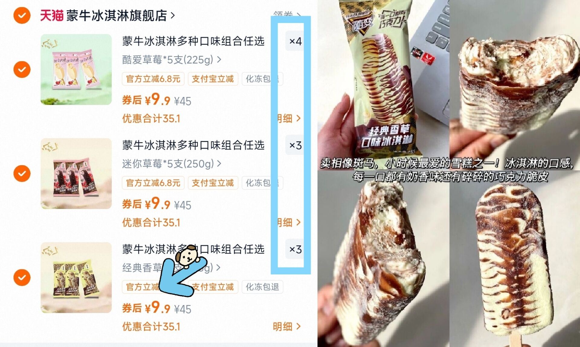 蒙牛多口味冰淇淋任选10件 99元好单发报员2026年03月27日 21:250举报 到手50支!折1.9元/支快撸拍10件99元 全是新上值钱货---蒙牛多口味冰淇淋任选10件复制这条信息打开手机陶宝https://m.tb.cn/h.iiAJFyh有随心脆 蒙牛圈好多好吃的复制文案