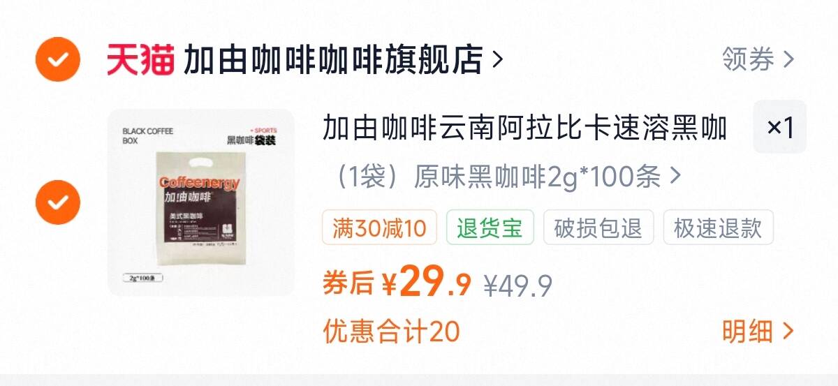 加由咖啡 云南阿拉比卡美式黑咖啡2g*100条 27.9元好单发报员2026年03月27日 21:250举报 加由咖啡 云南阿拉比卡美式黑咖啡2g*100条27.9元https://m.tb.cn/h.i8cN9sd复制文案