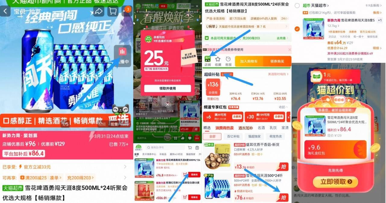 ①领礼金进右上角直播间领9折券
