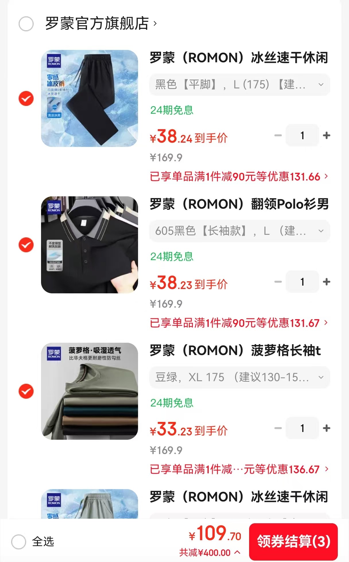 罗蒙(ROMON)冰丝速干休闲裤 翻领Polo衫 菠萝格长袖,各拍1件【109】