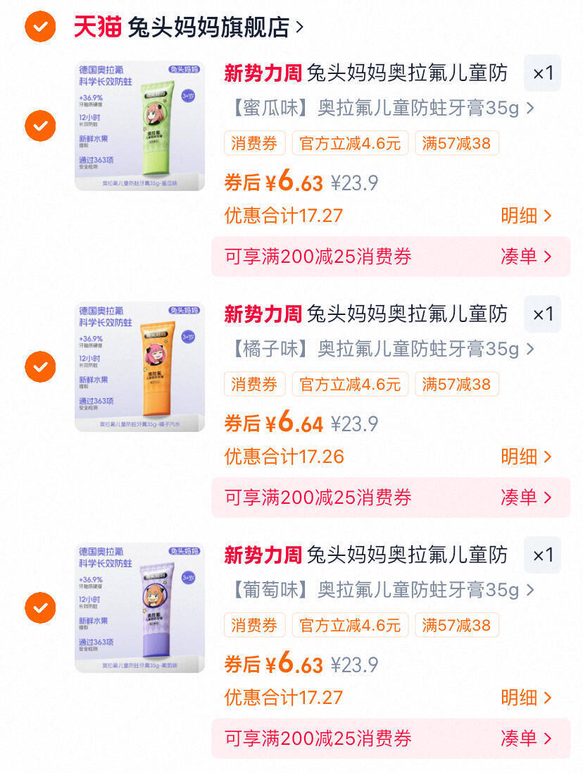 兔头妈妈儿童牙膏任选3件 19.96元 好单发报员 2026年03月28日 10:55 0 举报 速度兔头妈妈儿童牙膏任选3件19.96元.3/支天然果味防蛀不辣口https://m.tb.cn/h.iie6IRZ 复制文案