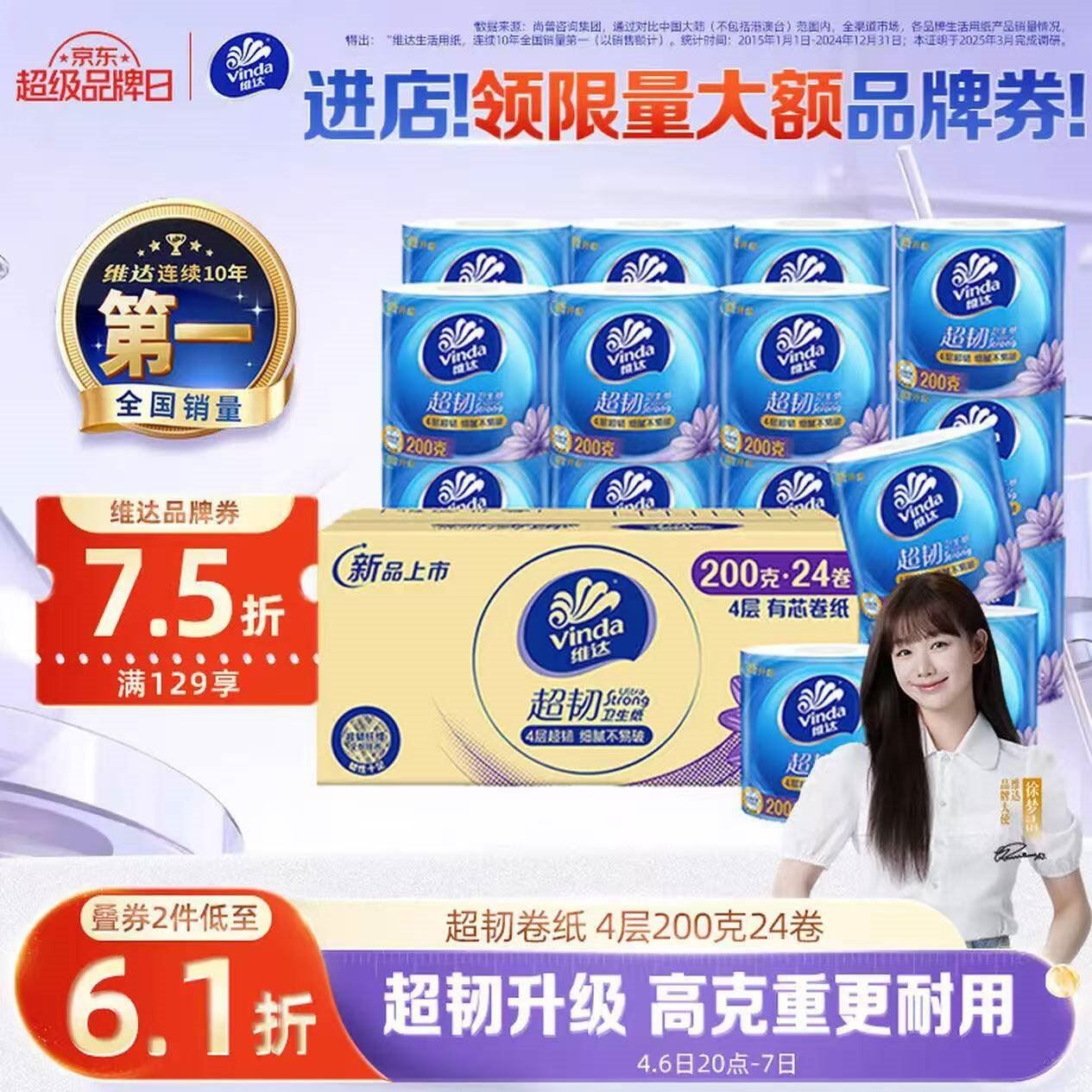 维达有芯卷纸200g*24卷 买2件89.2元,plus付82.2元