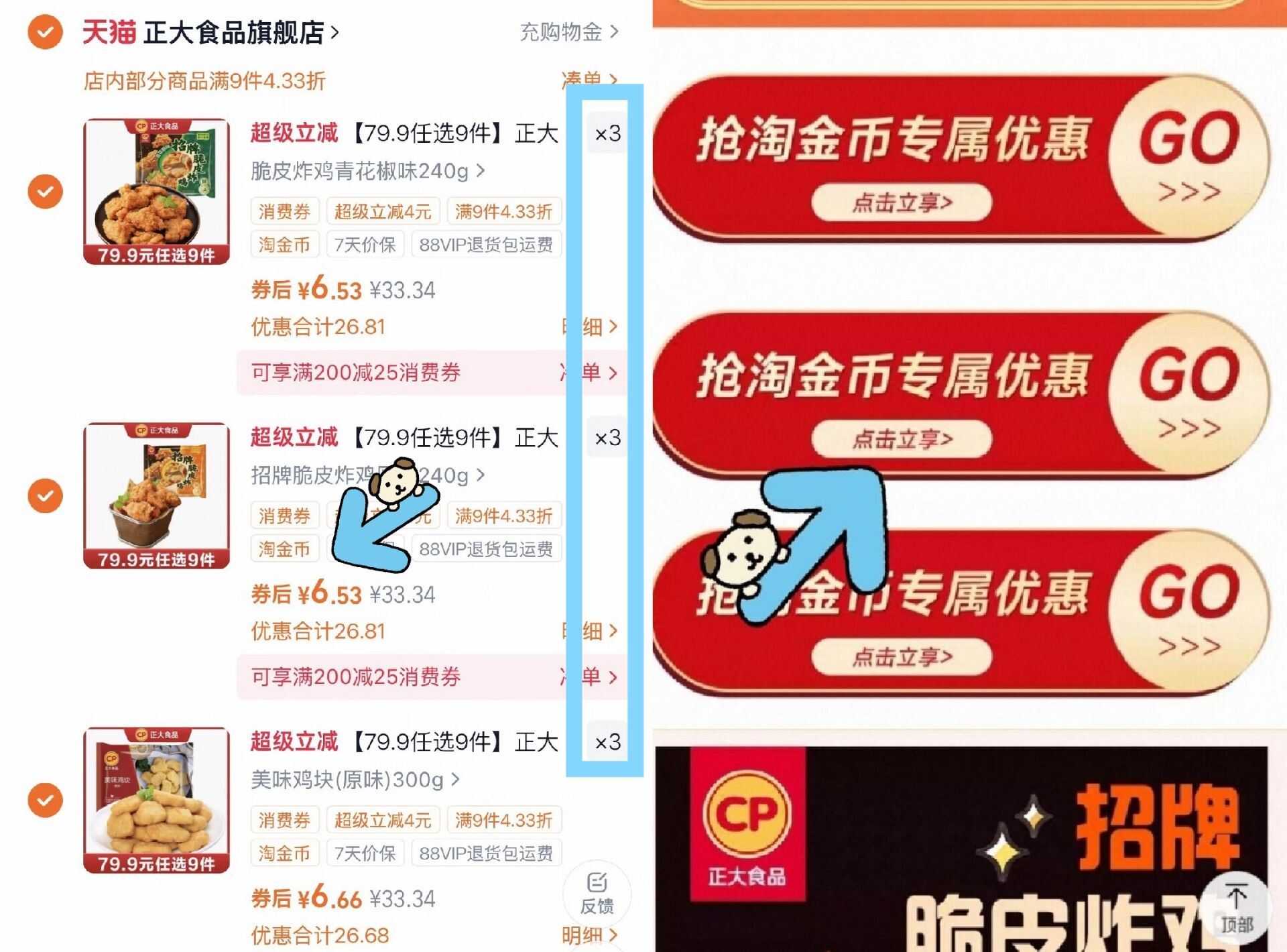正大炸鸡速囤!叠1.2元淘金币