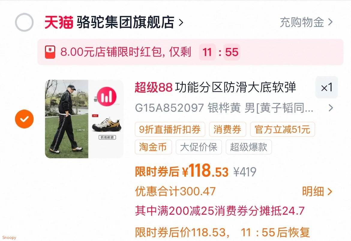 6 回购物车骆驼数量改1,一起提交折骆驼到手【118.53】