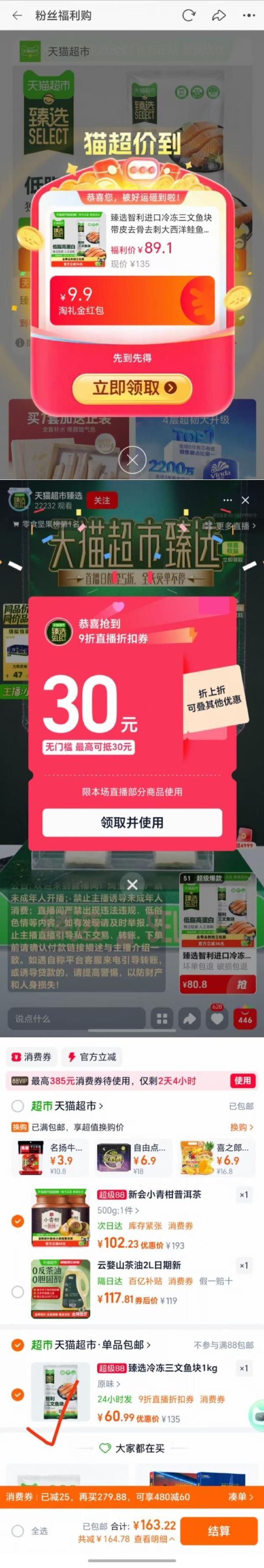 领礼金,右上进直播间加购,领9折券(甄选直播间目前应该都还有)