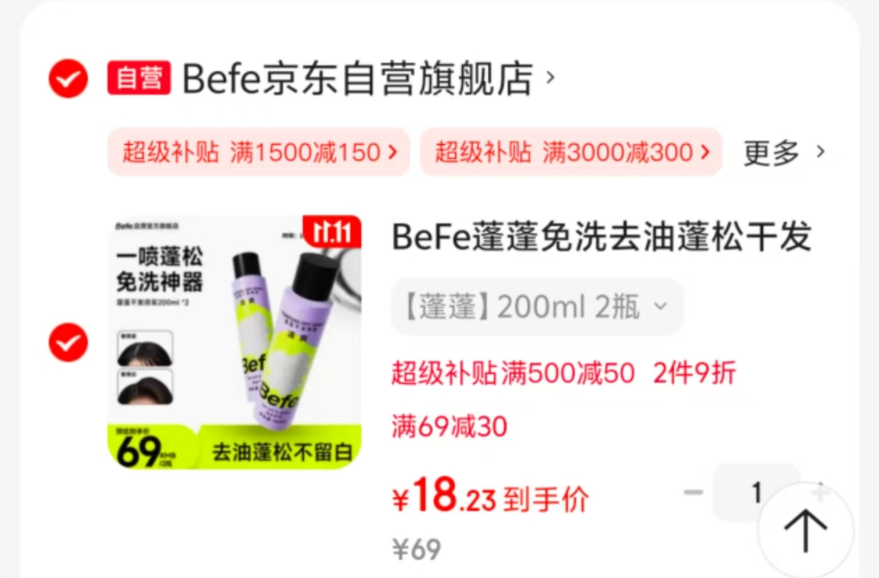 自营 BeFe蓬蓬免洗喷雾200ml*2瓶