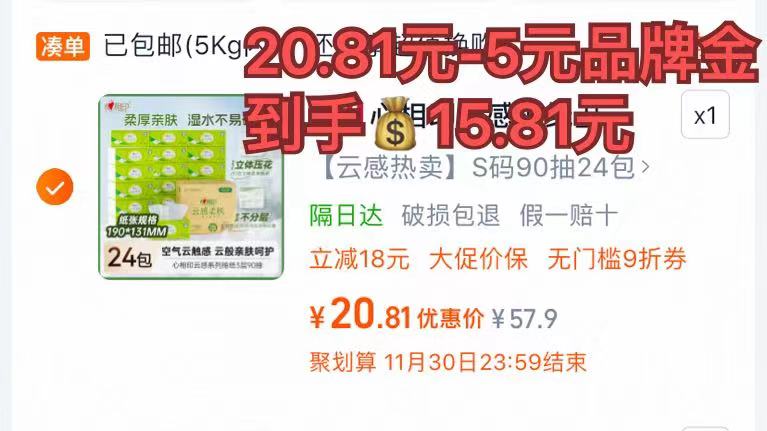 1、详情领“心相印”5元品牌金
